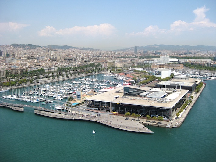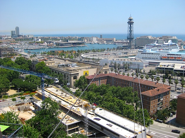 掲載の写真は、アルマダ広場からバルセロナ港を結ぶ路線からの眺めで、