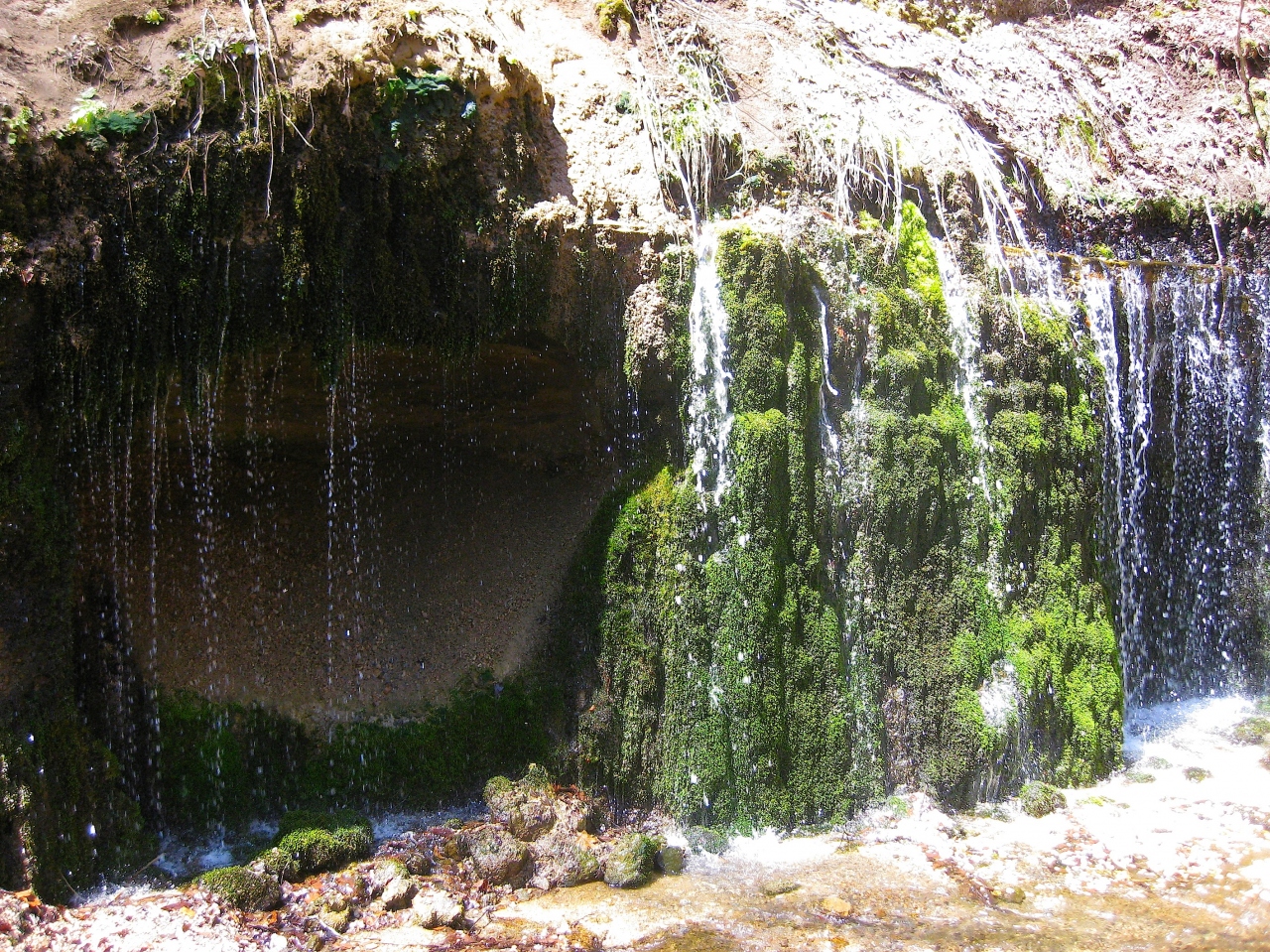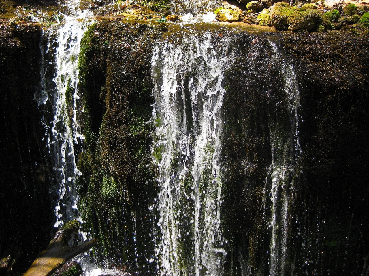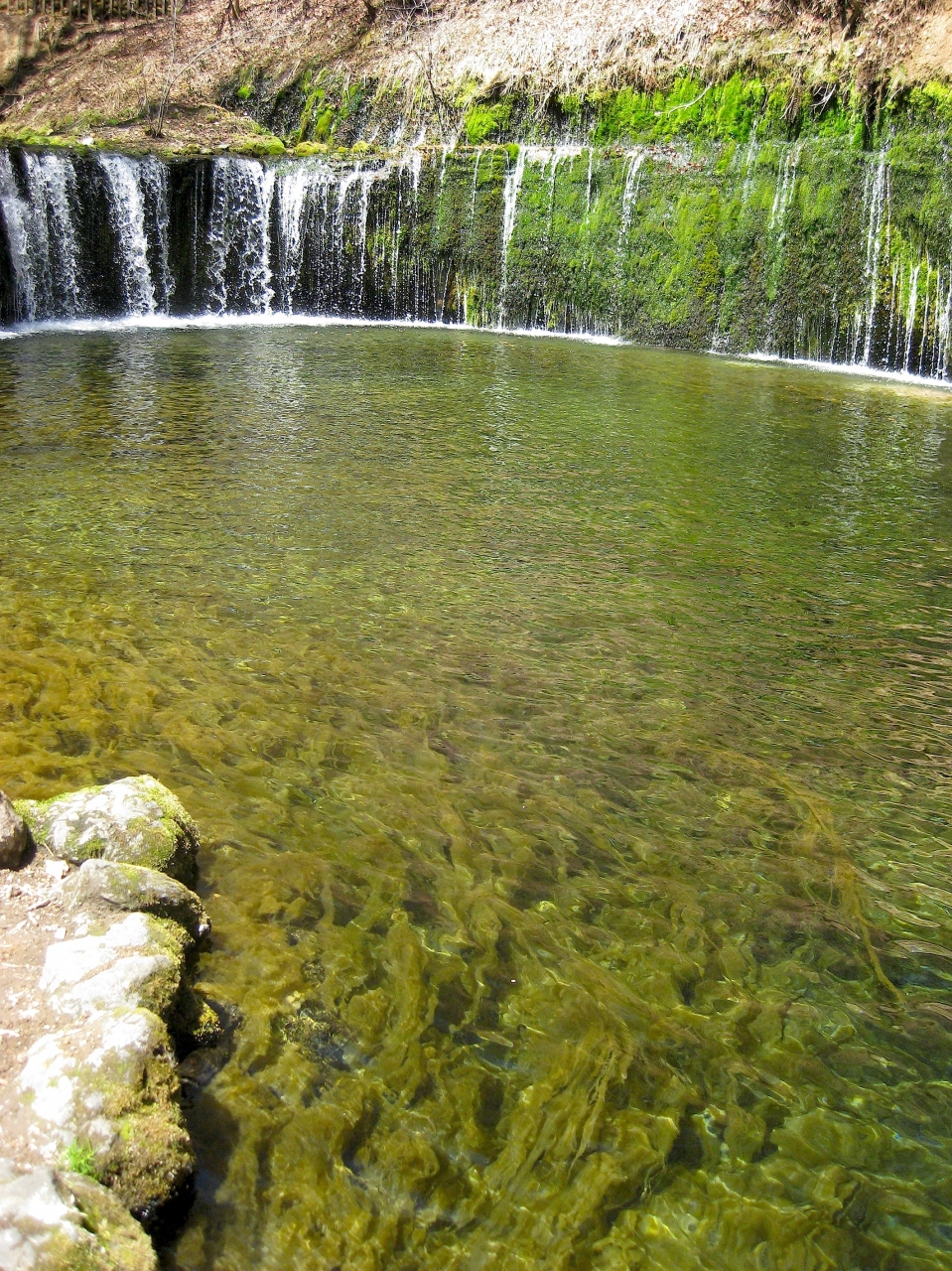 滝壺は浅く透明感がありますが、奇妙な藻が群生してます。