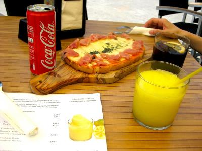 ジローナ駅よりカテドラルに向かう途中にあり駅から約10分。橋を渡り旧市街に入った川沿いのカフェテリア「GELATIAMO」というお店です。お店はこじんまりとして小さく、カフェやソフトドリンク、アイスクリーム、軽食にはピザなどがあり、ちょっとした休憩場所には最適です。バルセロナのカフェには必ずと言っていい程、レモンのスムージーがあったが、ここで初めて飲みました。3.7ユーロ位で少々高めでしたが、味はとても濃厚で、最後まで美味しくいただけました。この味を求めバルセロナ市街でも2度程同じような飲み物を頼みましたが、GELATIAMOのレモンスムージーに勝るものはなかった。本当に美味しかった!