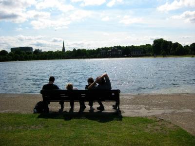 ハイド・パークとケンジントン・ガーデンとを二分するサーペンタイン湖には、朝の散歩で来ました。