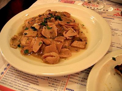 ポルチーニ茸と豚肉炒めは絶品で、食感と独特な風味が味わえます。