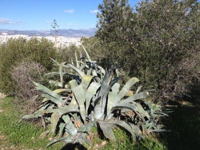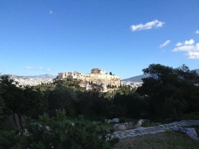 フィロパポスの丘へ向かう道の途中からパルテノン神殿を眺めます