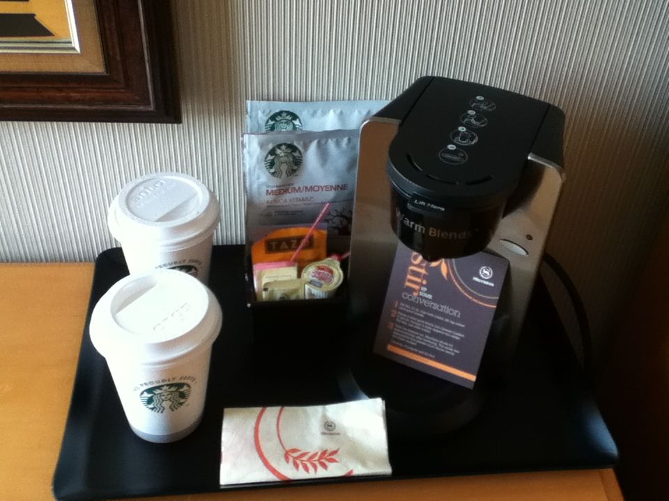 部屋は無線LANも無料、エレベータもセキュリティ掛かってて安心、部屋にあるコーヒーはスターバックスのものでしたw ベッドも寝心地良く熟睡できると思います。フロントに申し出ると空港までの無料シャトルバスも出してくれますが、本当にすぐに着きますw