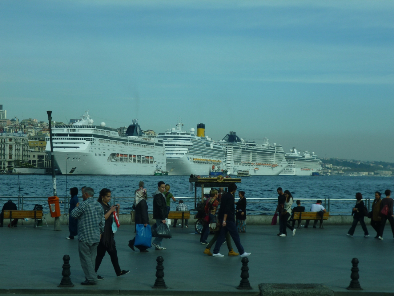 トラムのカラキョイ駅が近いですが、日によっては大型クルーズ船が4隻も停泊するので場所に注意を。