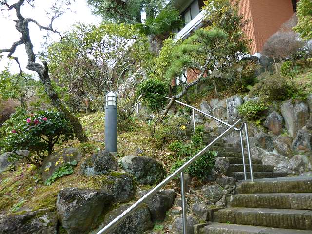 敷地の入り口は急な坂道で建物へも階段があり、バリアーフリーとは言えません。