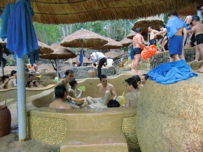 一般的にフルコース(泥温泉、温泉、滝、プール、タオル、水着、水)で