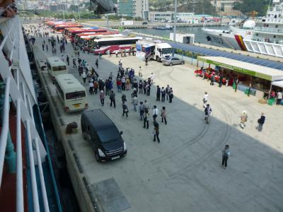 ピアからメインゲートまではシャトルバスが義務づけられています。