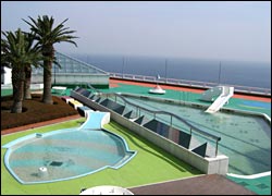 大浴場は大きいです。車つきのイス、家族風呂もあります。