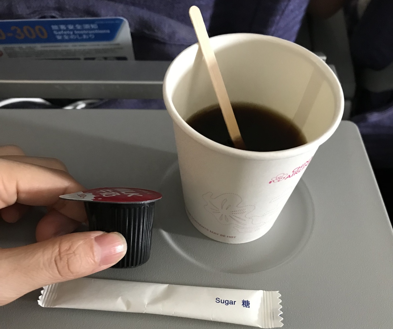 免税店でたくさん香水を試した人がいたようで、匂いに敏感な我が子はグッタリしてました。CAさんに座席移動の相談をすると離陸後に可能だから後で案内すると言われました(たぶん。英語苦手だから怪しい)。でも離陸後にそのCAさんを見つけられなかったし、バタバタとドリンクや機内食が提供されて、結局案内がないままでした。見える範囲は満席だったから最初から諦めてたし、時間経って慣れてきて食事したら紛れたと話してたので、そのまま何も言わず乗ってました。