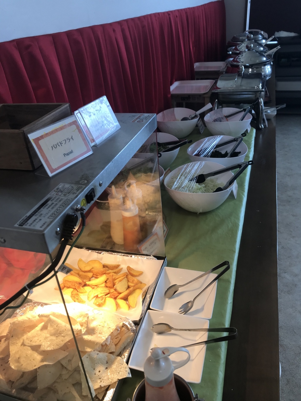 地獄巡りからすぐの好立地なのに1500円でバイキングだよ?野菜カレーは野菜たっぷりだし、ダルカレーもチーズナンも美味しい。フライドポテト、サラダ、フルーツヨーグルトも食べ放題。更にコーヒーやジュースのドリンクバーも。店前に駐車場まであるのに。