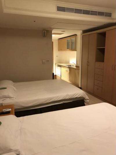 阪急交通社のツアーで宿泊。廣三SOGOが見える位置の28階スタンダードツインルームでした。ダブルベッドが2つだし部屋も広くて快適でした。