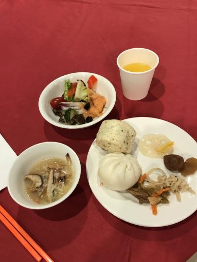 【7枚目】朝食バイキング。肉まん、マヨネーズと海苔がかかった肉団子、紫芋のサツマイモボールが美味しかったです。