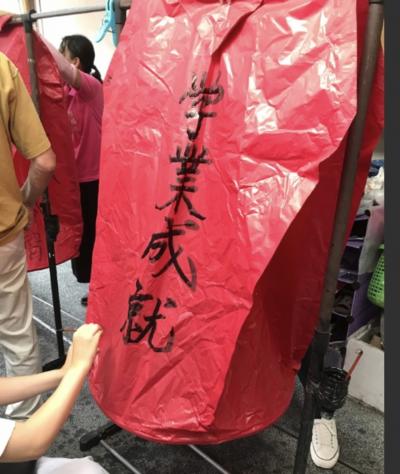 天燈の紙は墨の染み込みが悪いので、うっかり触ると服に付きます。でも家に帰ってからウタマロ石鹸と洗濯ブラシでゴシゴシ洗ったら落ちました。化学繊維(ナイロン、ポリエステル)の服だったから落ちやすかったのかもしれません。