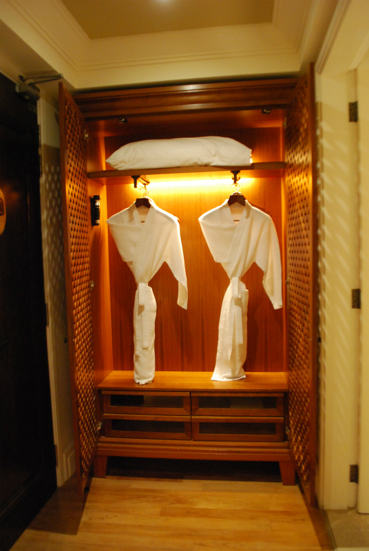 バスローブ、ふわふわスリッパ、十分な数のタオル、