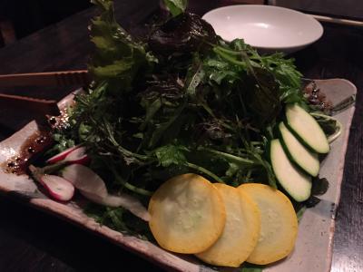 お野菜(サラダや前菜)、一品料理(鶏もも肉の炭火粗塩焼など)も