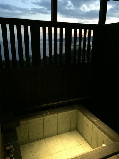プレミアルーム温泉露天風呂付き(山が見えない方の部屋)を利用しました。