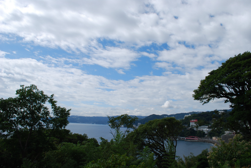目の前に広がる空、くも、海の青、