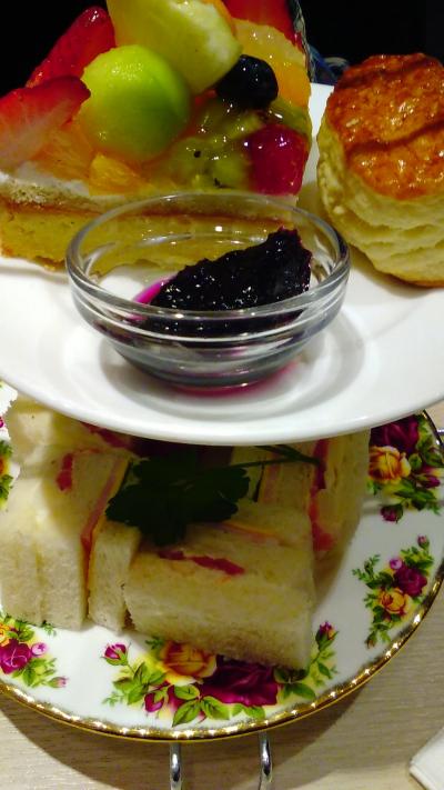 贅沢にも、デパートの紅茶専門店にてアフタヌーンティ。