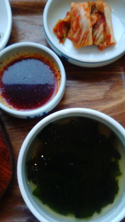ごはん、わかめスープ、キムチがおかわり無料とのこと。