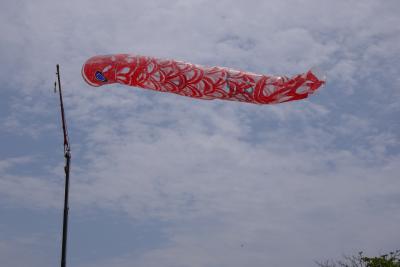 とても大きなこいのぼりや子供たちが作った小さなこいのぼりが
