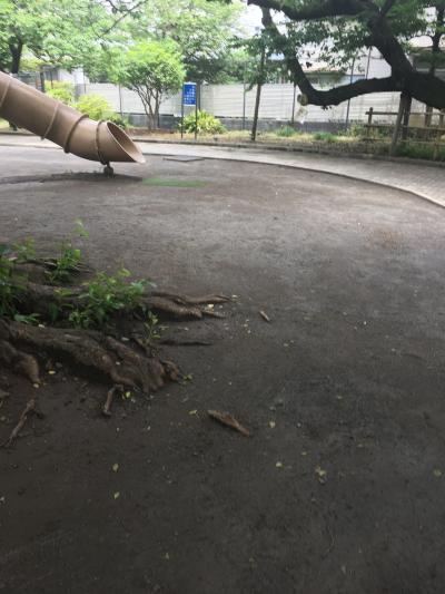 木の根っこの体験場所でとても楽しそうに過ごしていました。