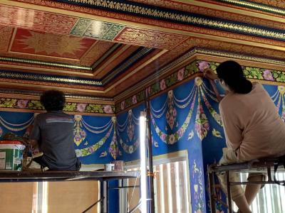 上座部仏教マハーニカイ派の寺院で、仏堂のエメラルドグリーンの天井が有名ですが、白亜の仏堂(モンドップ)自体がとても綺麗です。