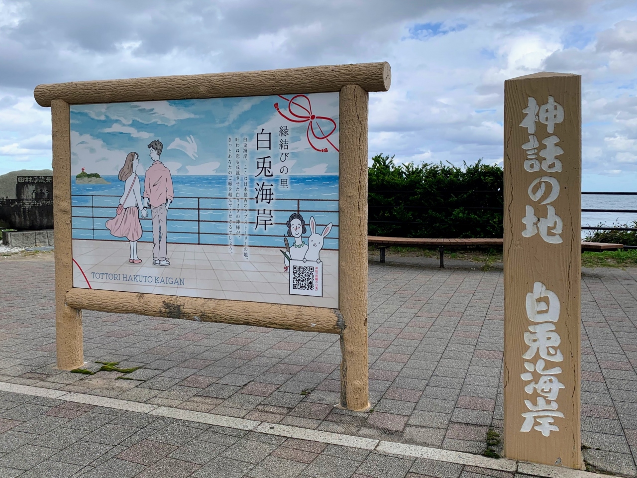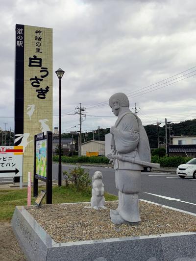 道の駅の前の海岸は白兎が渡った【白兎海岸】、道の駅の駐車場側の山には【白兎神社】があります。