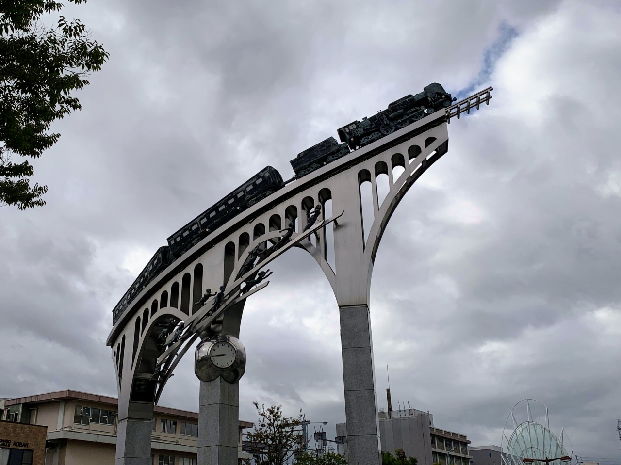米子駅前にドォーンと建つ「銀河鉄道」のオブジェ。
