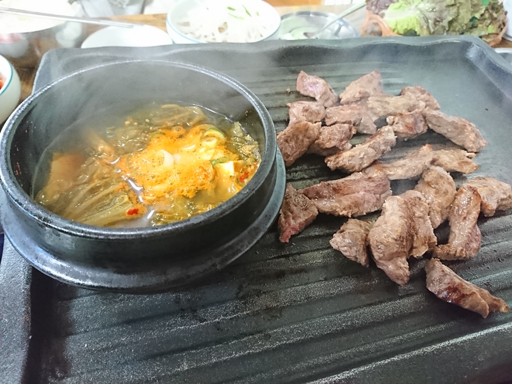 時間が時間だったからか、店内には私たち夫婦のほかに客はなく、こちらの社長サンからテンジャンチゲ(韓国味噌汁)をサービスしていただきました♪♪- 旅行時期