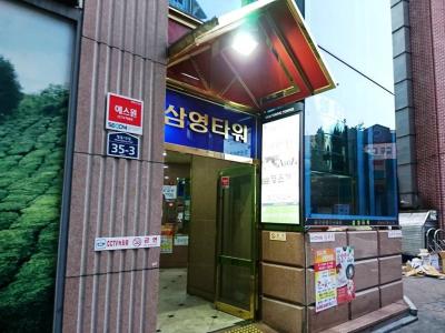 「明洞餃子」の小さい方のお店の並びだし、目の前に「ART BOX」もあるし…わかりやすいところにあるのですが、入り口が「え?」っていう感じの場所です(^^;;