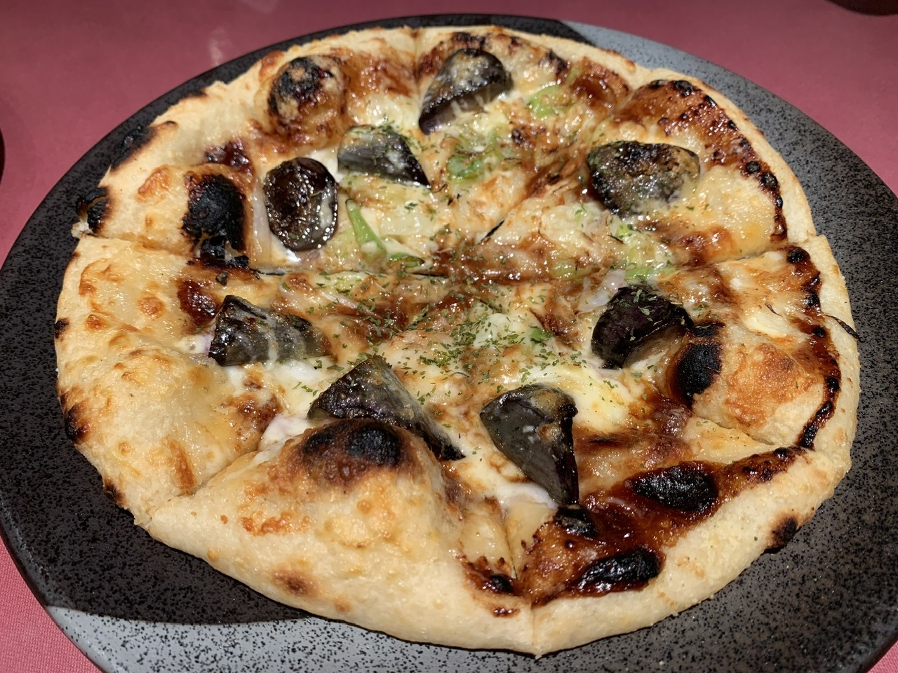 ネギと茄子の田楽味噌のピザが絶品でした(^^)- 旅行時期