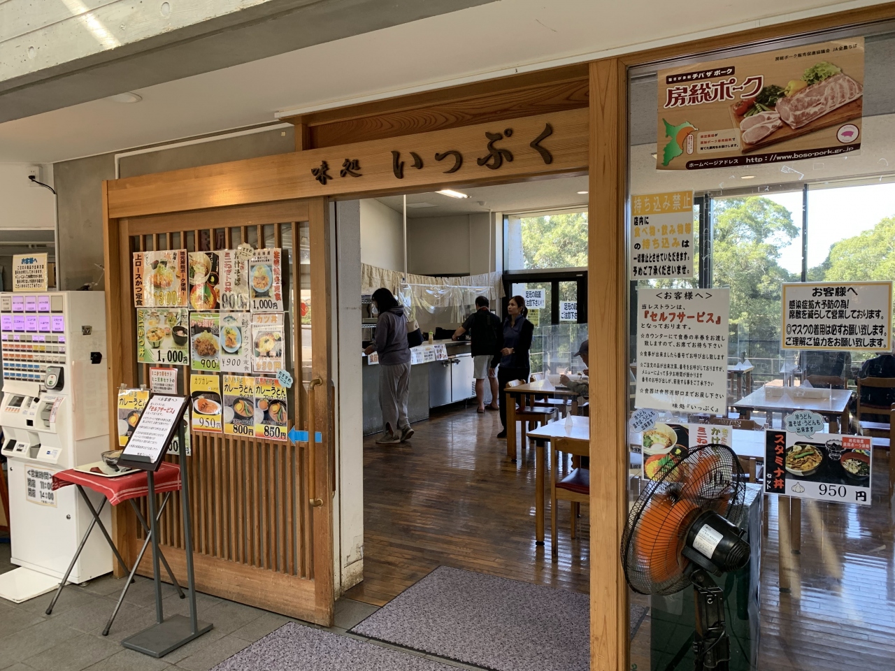 隣には野菜の直売所があり、直売所の入口を入ると左手にレストランの入口があります。