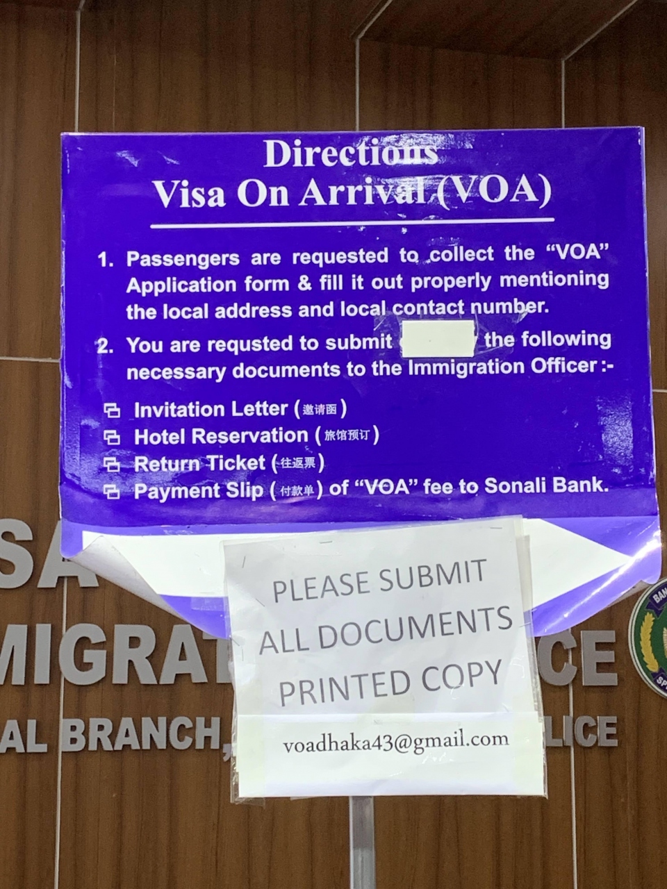 ビザを申請するカウンターの上に大きく「VISA ON ARRIVAL」「IMMIGRATION POLICE」と壁書きされていますので、迷うこともないと思います。