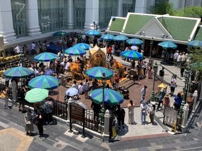 BTSの「チットロム駅」からサイアムやナショナルスタジアムの方向に300メートルほど進んだ交差点の角にあるヒンドゥー教の寺院です。