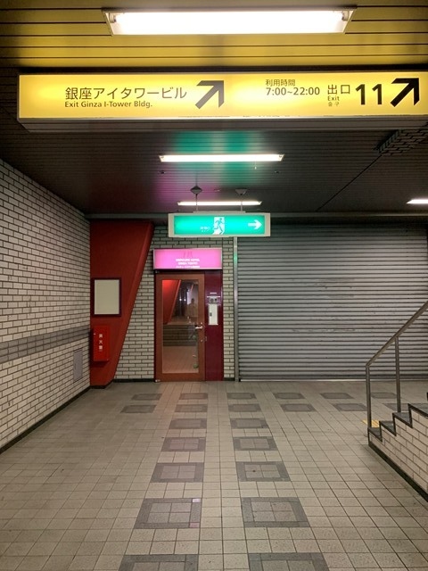 東京メトロ有楽町線「銀座一丁目駅」の11番出口の階段を上らずに、地下から直接ホテル内に入れます。(通用口のような感じですが^^;;)