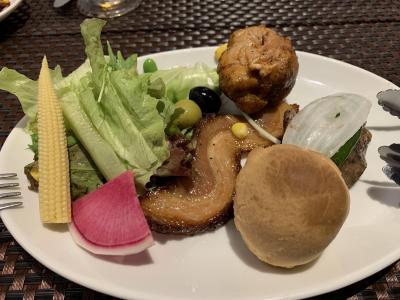 肉ばかりで飽きるかと思いきや、途中で挟まる野菜やキノコ、パイナップル(!)で口の中がリフレッシュされます(^^)