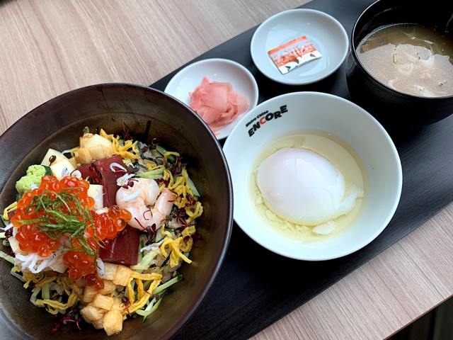 朝食は「ENCOREバーガー」「海鮮DON」「ステーキサラダボウル」の3品の中から選びます。