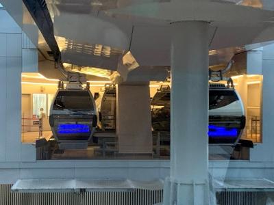 JR「桜木町駅」の目の前にあるヨコハマエアキャビンの「桜木町駅」と横浜ワールドポーターズの前の「運河パーク駅」を結ぶ約5分の空中散歩です。