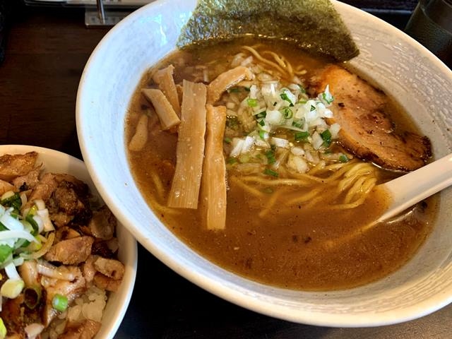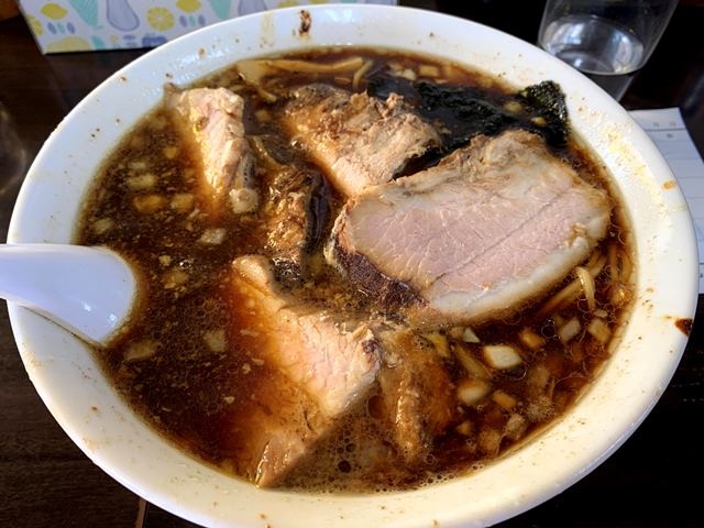 竹岡式やぐうらーめんを食べたことがない人は驚くかもしれないぐらい真っ黒なスープ、たっぷりの刻み玉ねぎ、ブ厚いチャーシュー…ヤミツキです♪♪