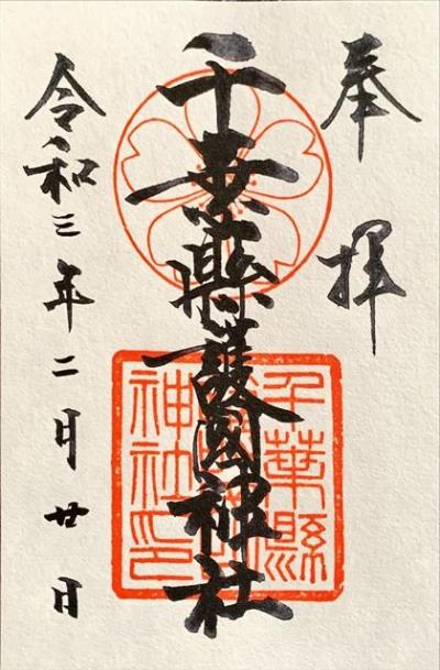 もともと「千葉縣招魂社」として明治11年に千葉県庁公園に創建されたのが、昭和14年に「千葉縣護國神社」と改称し、昭和18年に亥鼻山に遷座されたそうです。