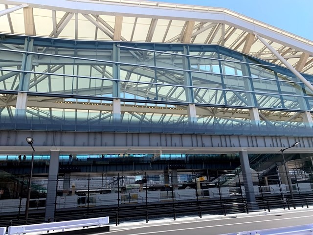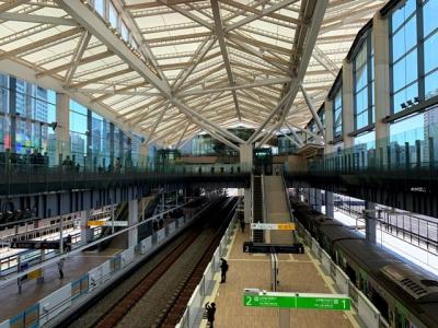 ペデ(ペデストリアンデッキ)でつながっているというよりも、駅から出ると、もう目の前にあるといった感じです(^^)