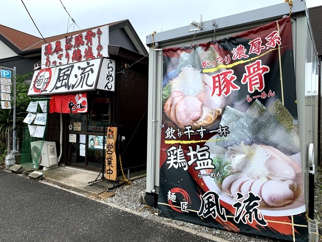 ファサード看板にもスタンドサインにも「らーめん50番」と書かれています。