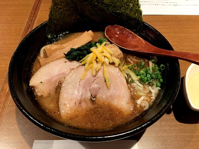 注文した「特製濃厚豚骨魚介中華そば」はまさに名前の通りの濃厚な豚骨と魚介のガツンとくるラーメンでした。