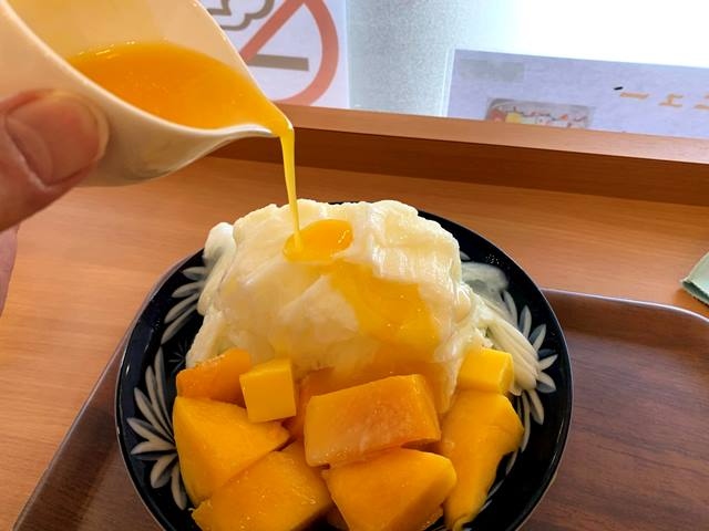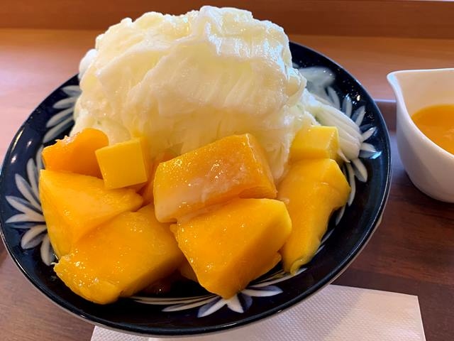 マンゴーかき氷は大ぶりにカットされたマンゴーがゴロゴロ…。