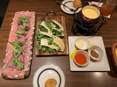 生ハムとローストビーフが食べ放題になっているチーズフォンデュを食べました。