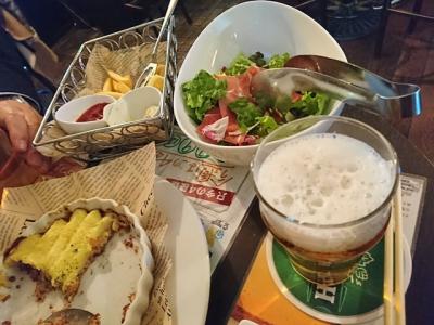 フィッシュアンドチップスもビールに合いますが、イギリスで食べるものの半分以下のサイズです(^^;;- 旅行時期