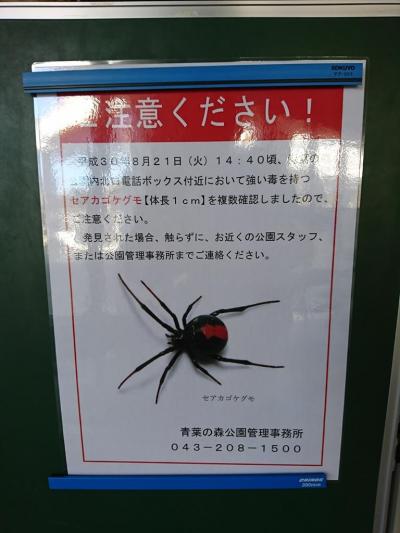 最近、敷地内でセアカゴケグモが捕獲されたそうで、注意喚起のポスターが貼られていました。どうぞお気をつけください。- 旅行時期
