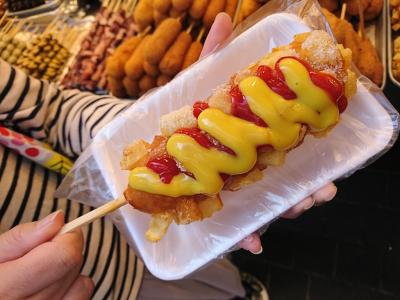 訪韓前(夏に入る前ぐらいだったでしょうか…)、テレビなどで行列が映されていた「チーズinドッグ」を食べてみました。