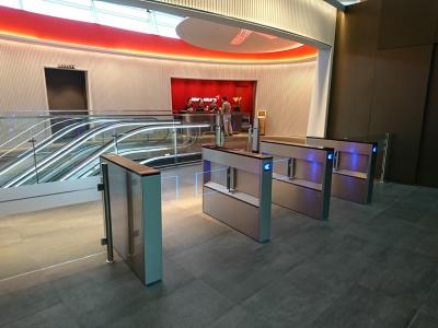 ボーディングパスをカウンターで見せるのは今までと同じですが、ラウンジへの入口にボーディングパスの2次元コードを読み取るセンサーと回転バーが設置されていました。