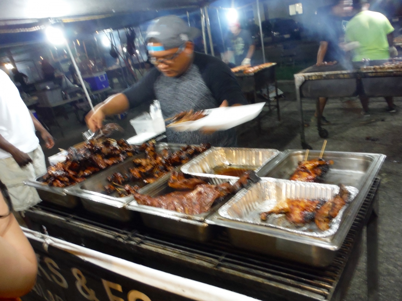 人気のBBQ肉屋台はこれまた長蛇の列、並んでるだけで時間過ぎちゃいます